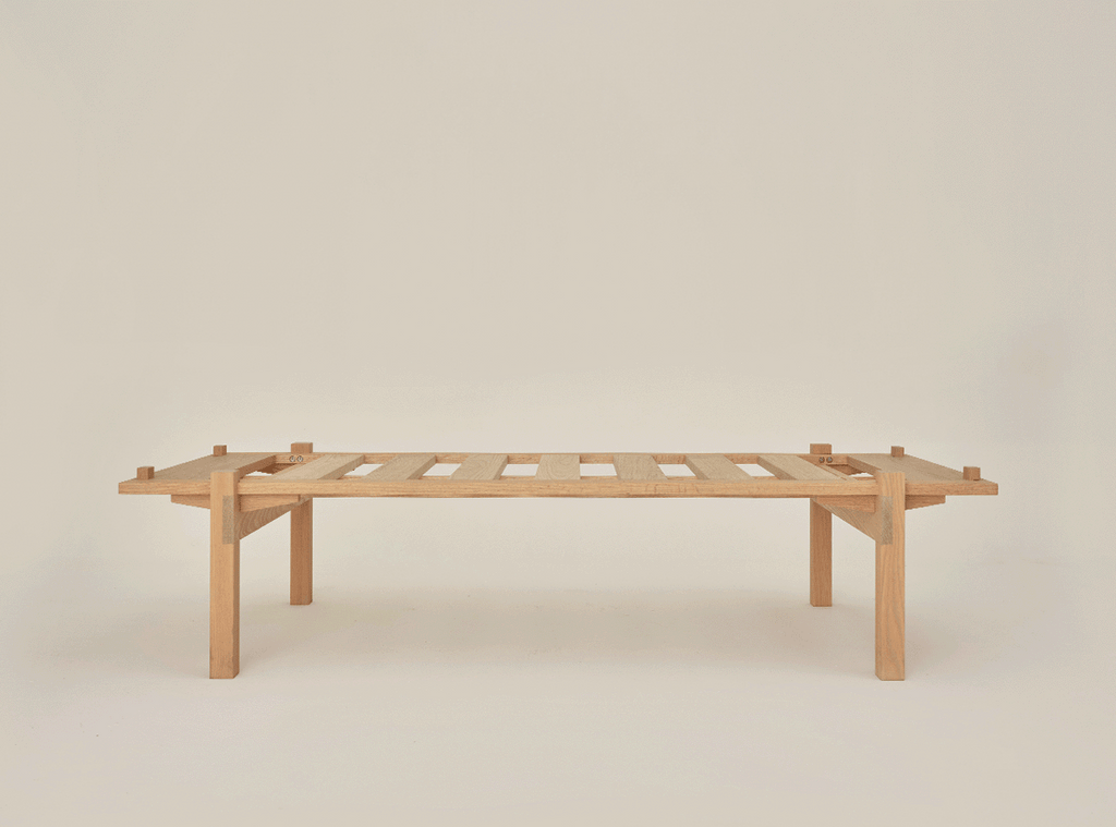 With the consideration of creating a durable platform with a cozy feeling, it is a piece that can be adapted to any space independently. Crafted from solid oak wood, the skeleton combines well-thought craftsmanship with lightness.