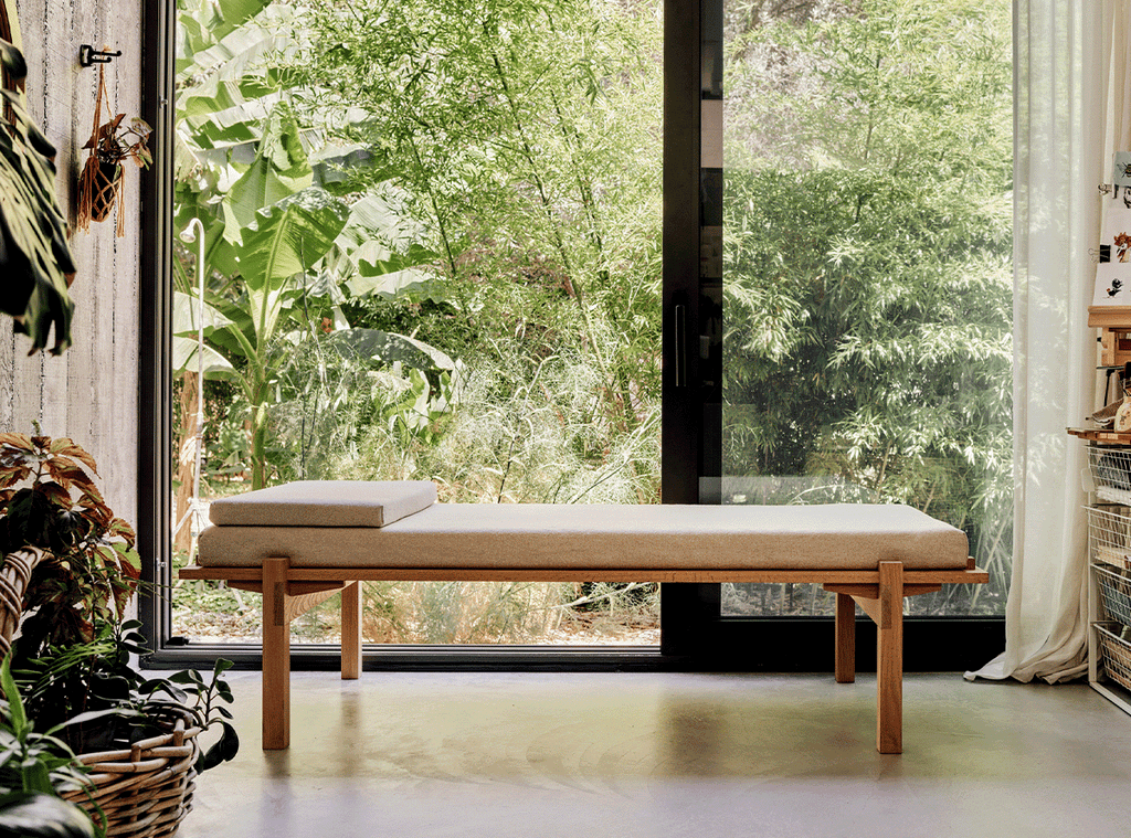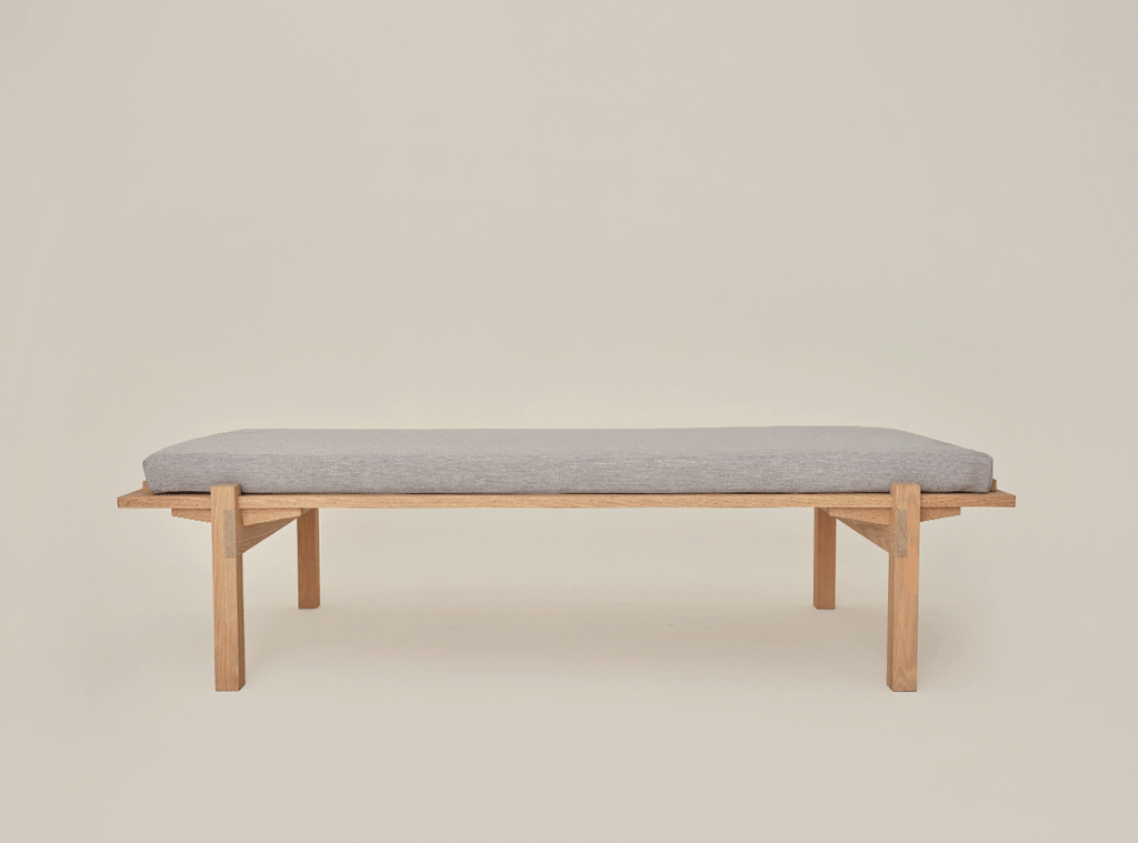 Born in a monumental serenity, Daybed is a piece of furniture that blends comfort and pure geometry. Characterized by structural appearance, it is a balance of horizontal and vertical lines with a Japandi aesthetic.