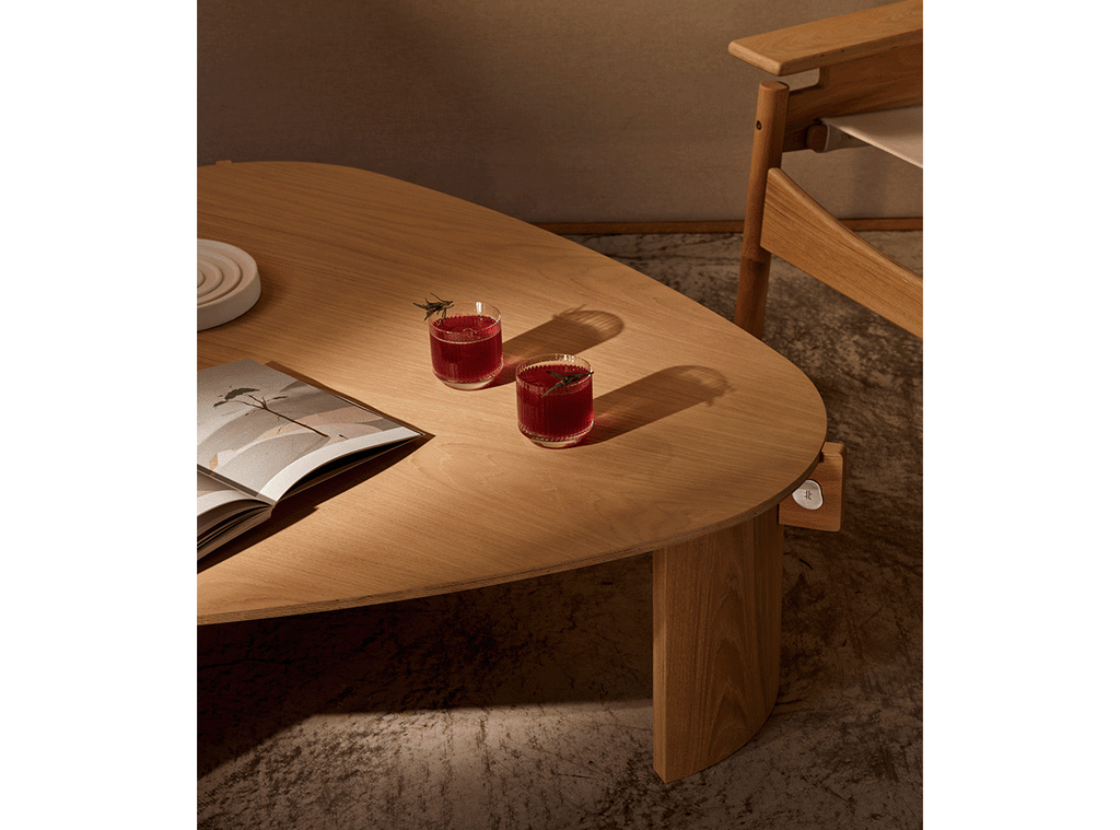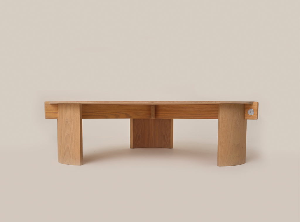 Crafted from oak wood, the low piece awakens a sense of tactile by making the unique textures of the material visible. Instead of covering the details, it reflects the transparent relationship of the parts to its silhouette.