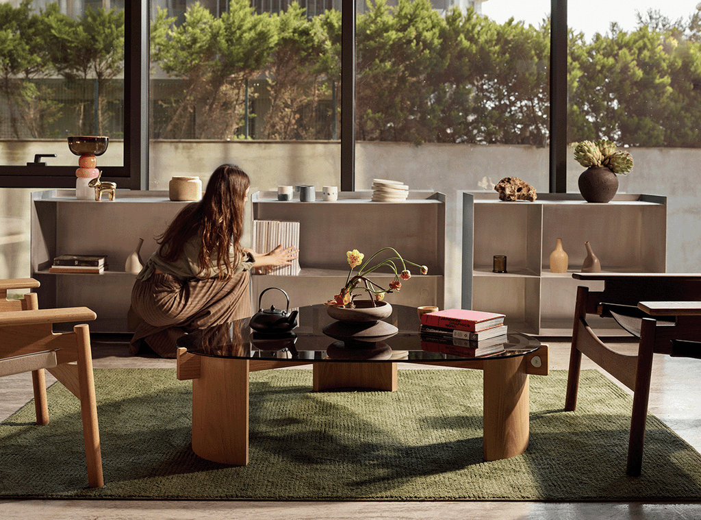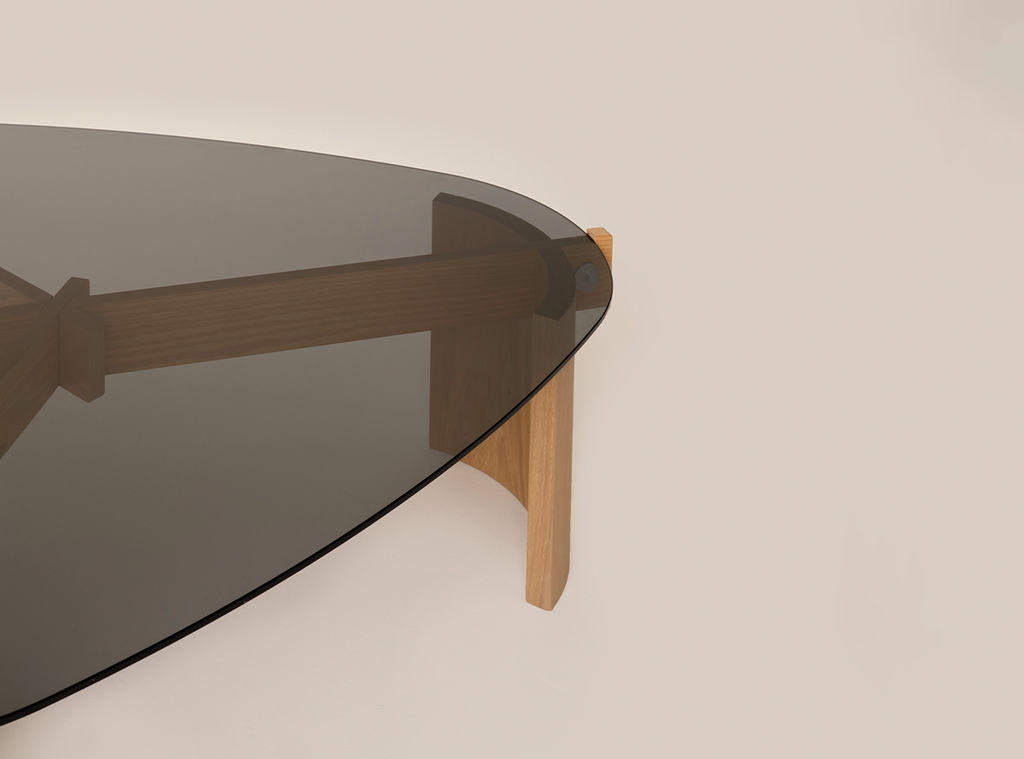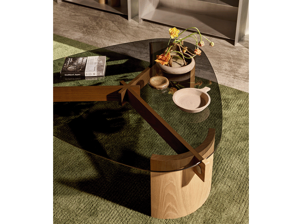 Flow Coffee Table is a refined interpretation of Chabudai, the traditional Japanese low table. It is flatpack, and the pieces slot together easily with the system similar to the traditional Japanese woodcraft technique Jigoku-Gumi.