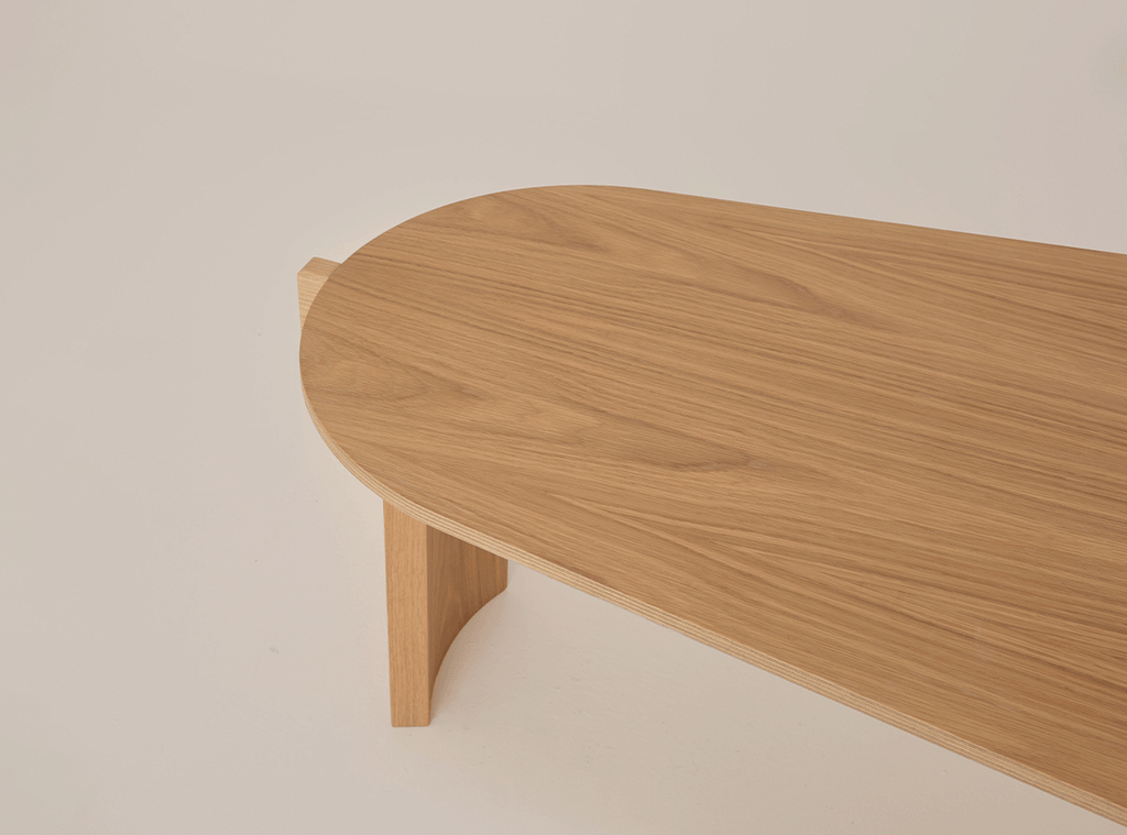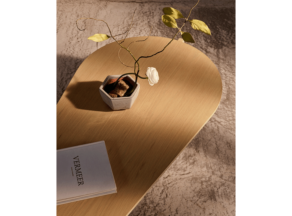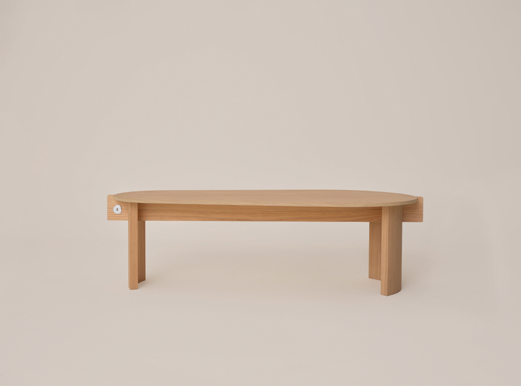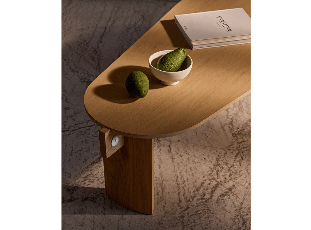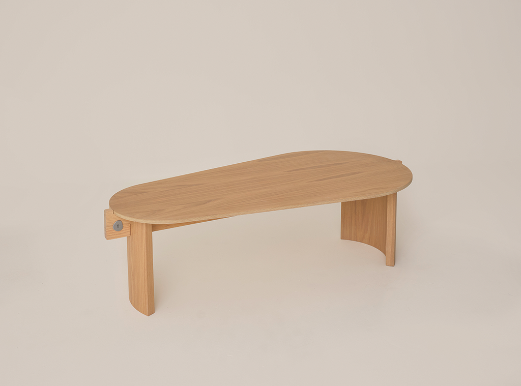 Crafted from oak wood, the low piece awakens a sense of tactile by making the unique textures of the material visible. Instead of covering the details, it reflects the transparent relationship of the parts to its silhouette.