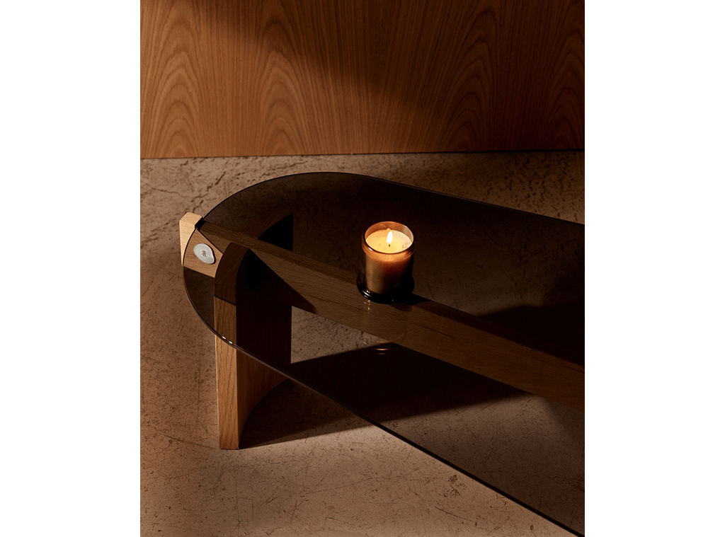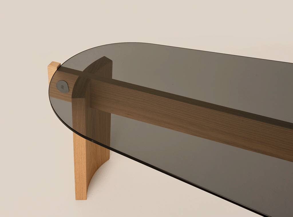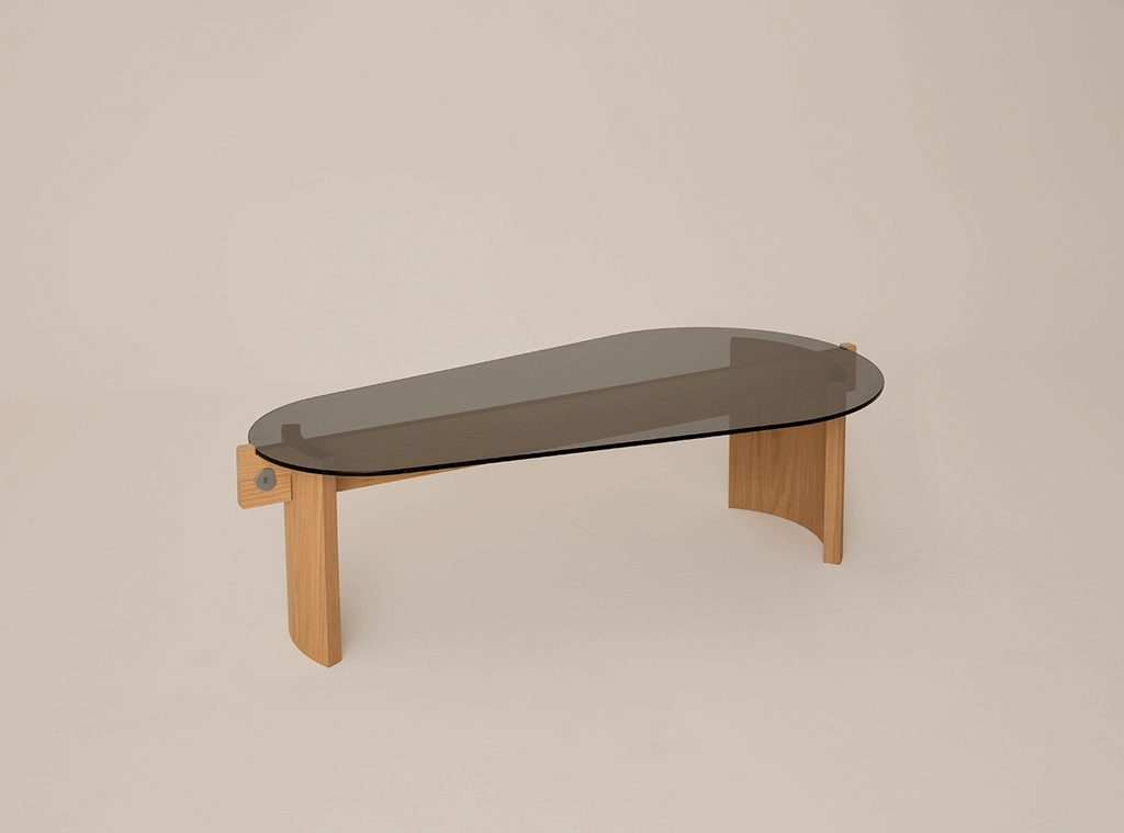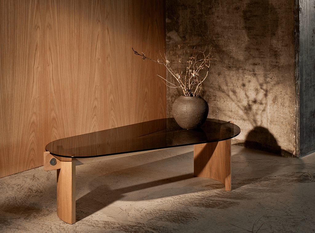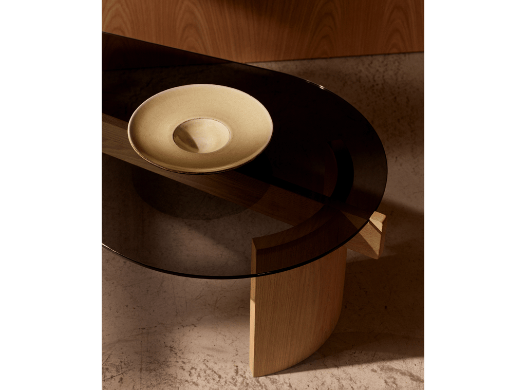 Crafted from oak wood, the low piece awakens a sense of tactile by making the unique textures of the material visible. Instead of covering the details, it reflects the transparent relationship of the parts to its silhouette.
