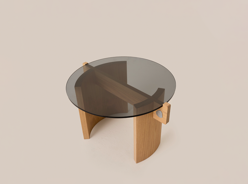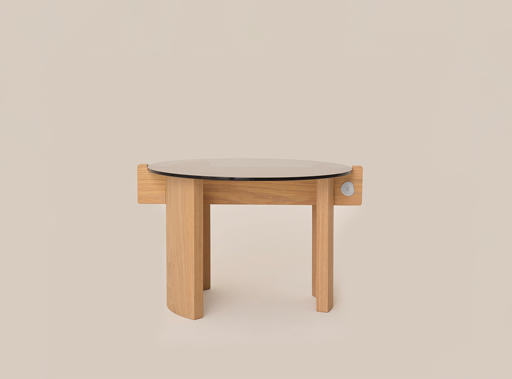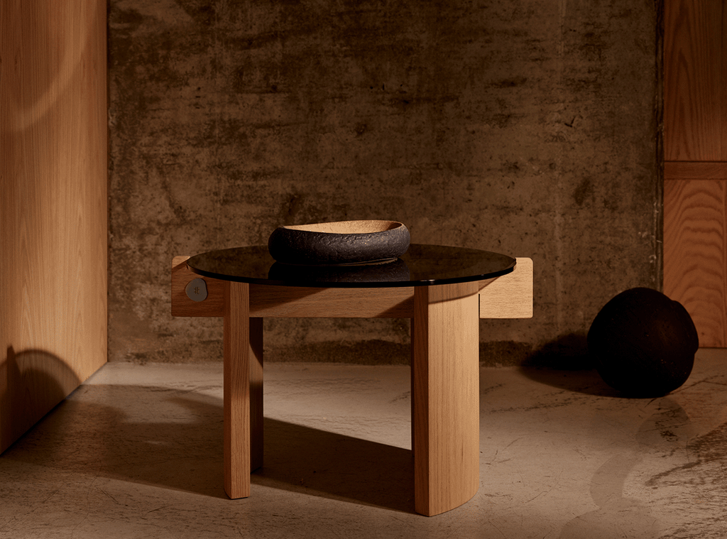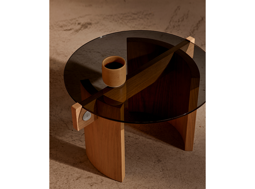 Crafted from oak wood, the low piece awakens a sense of tactile by making the unique textures of the material visible. Instead of covering the details, it reflects the transparent relationship of the parts to its silhouette.