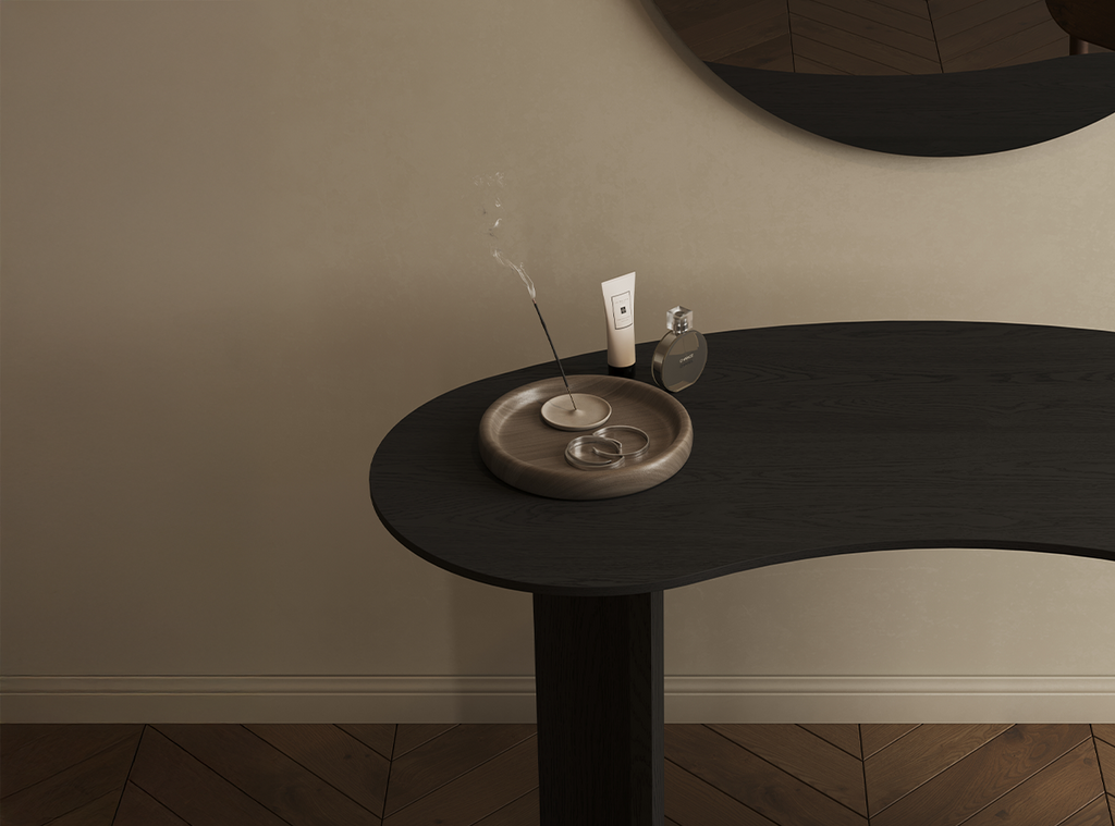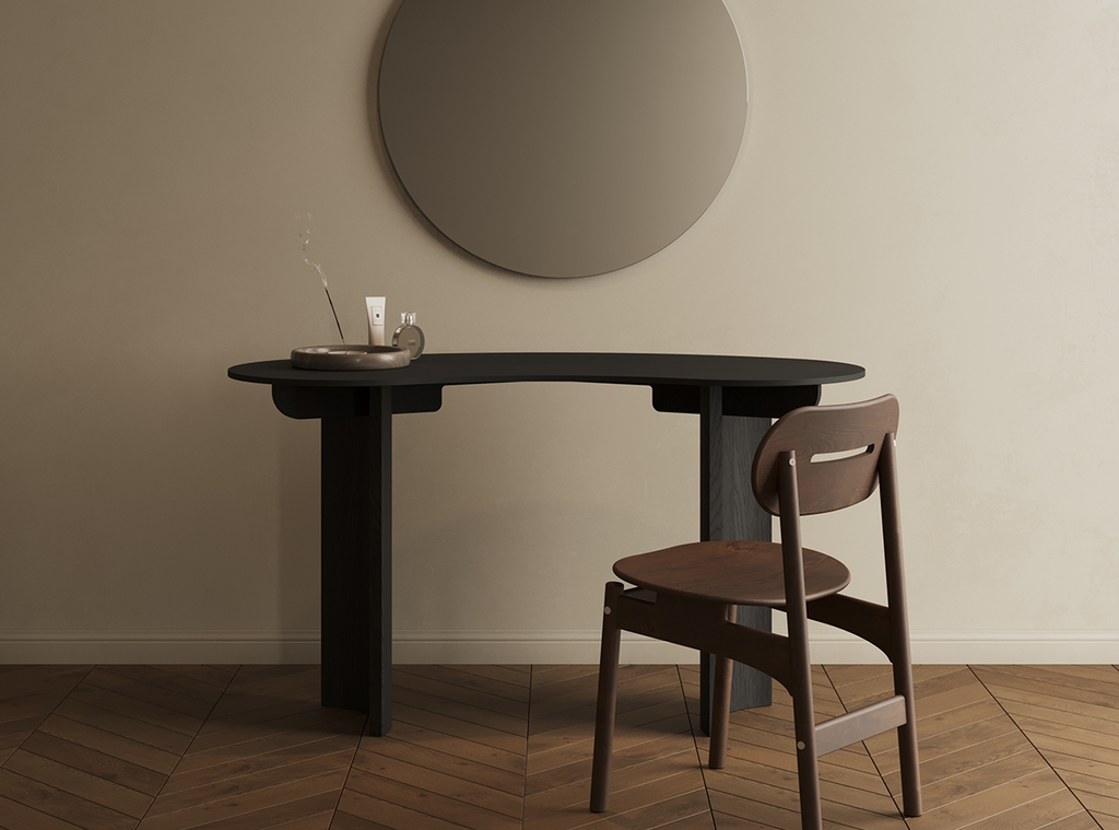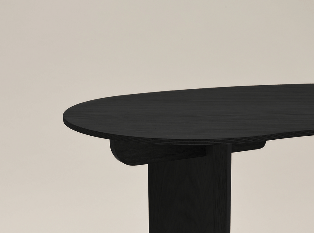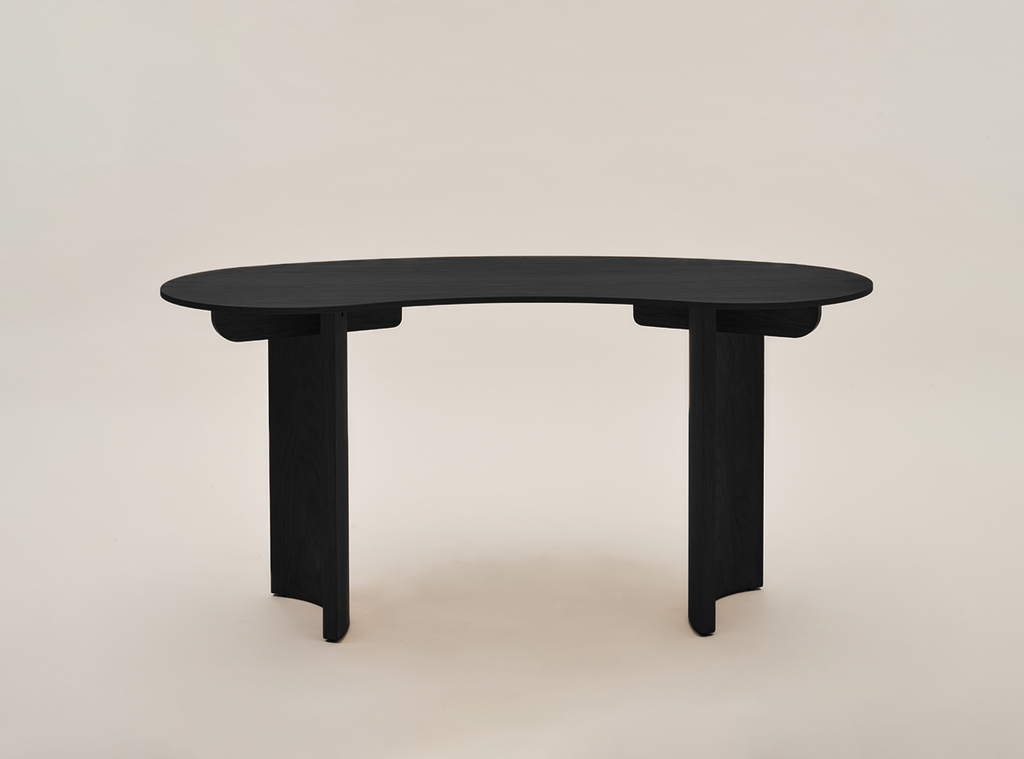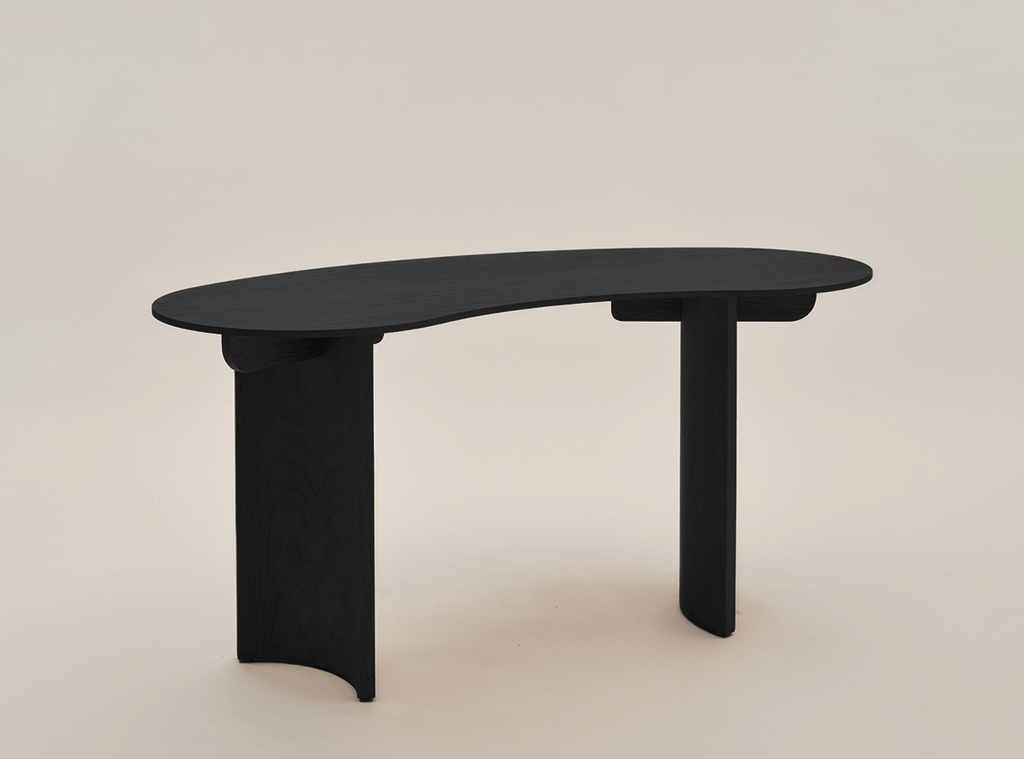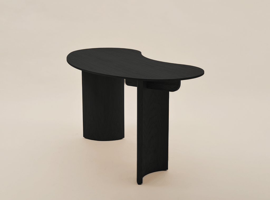 Flow Desk is an organic shaped table with a two-piece skeleton and curved legs. The linear pieces of the skeleton join into the legs to create a well-proportioned base for the table top. In other words, it is the reflection of Japandi-style Flow Family.