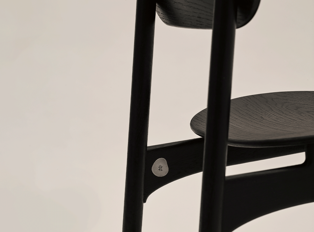 It is a seating piece that presents the beauty of well-thought woodwork. Crafted from oak wood, it defines a sculptural structure with solid round legs and elliptical surfaces with soft edges.