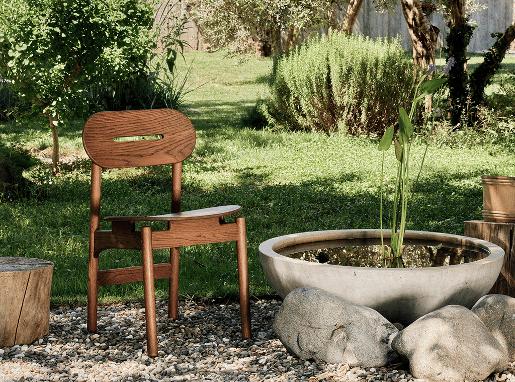 Frame Chair Elliptical reflects a sense of lightness thanks to its clear and linear cut-out on the back.