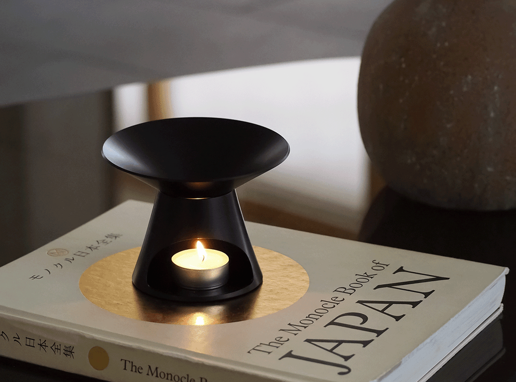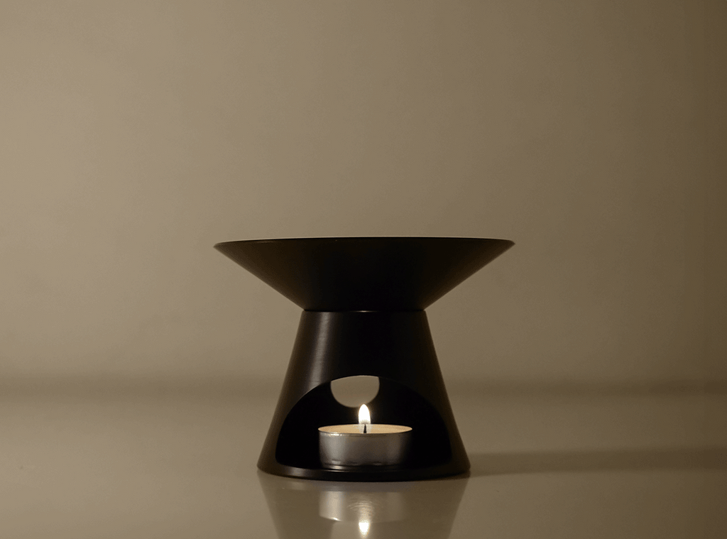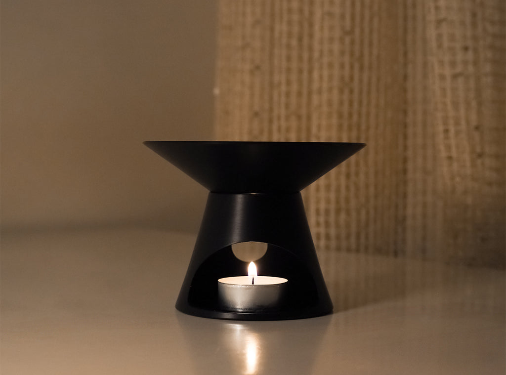 Dedicated to moments of tranquillity and serenity, Hikari Oil Burner is a living object that embodies a form within the balance of the Japandi style and the 1980s deconstructivism movement. It defines a sculptural volume of conic pieces that complete each other distinctively. Crafted with softly brushed black anodised aluminium, Hikari Oil Burner is designed by Gökhan Eryaman and İsmail Dağlı.