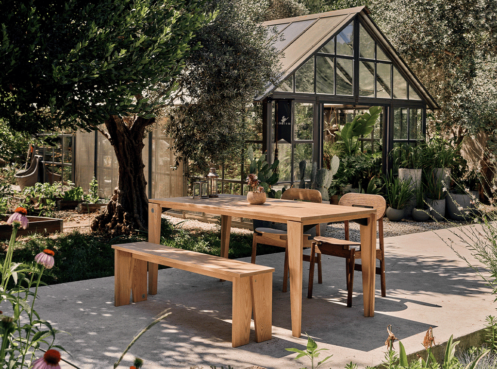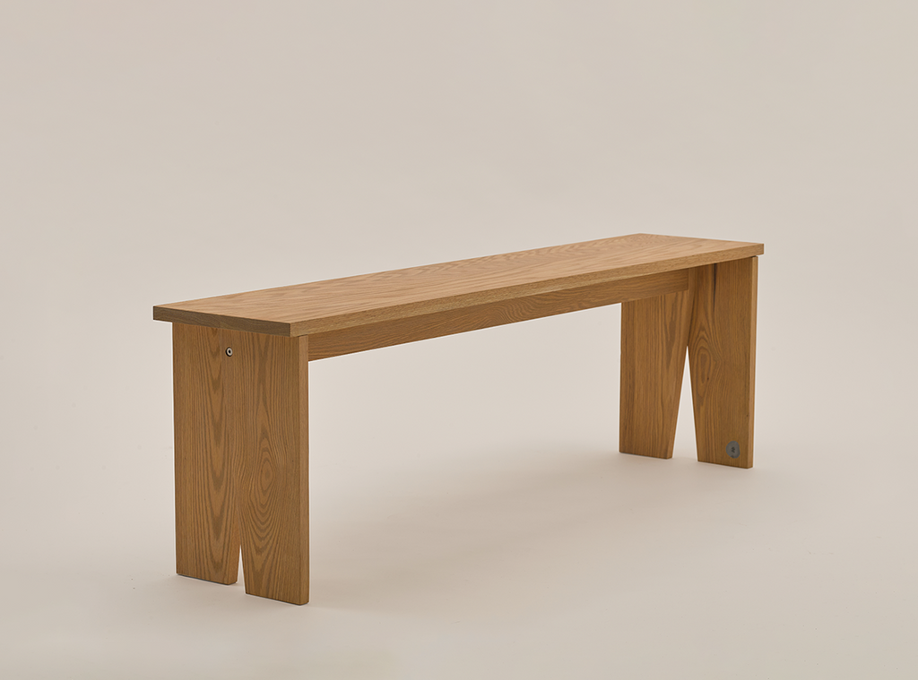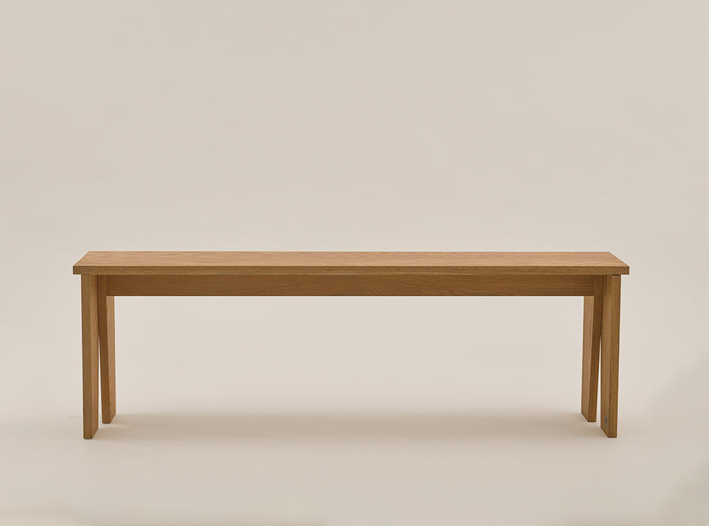 Crafted from solid oak wood, the skeleton of the Wa Bench consists of a linear rectangular top and double-breasted legs in two pieces.