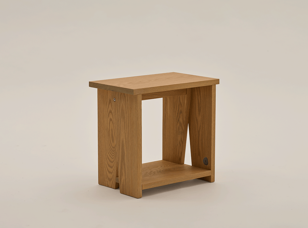 Crafted from solid oak wood, the skeleton of the Wa Stool consists of a rectangular top and double-breasted legs in two pieces.