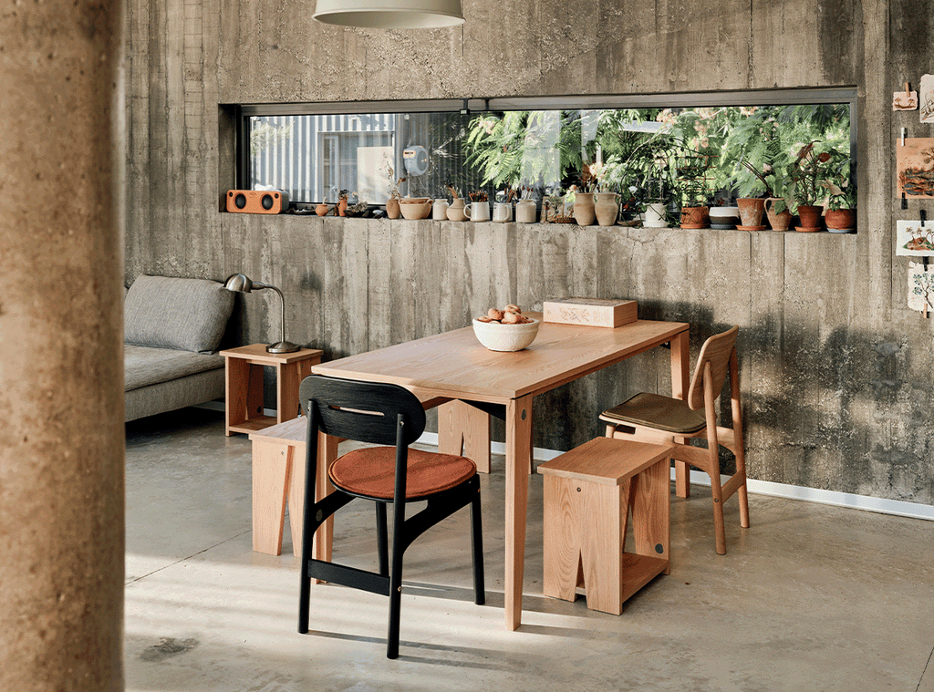 Wa Table is flatpack; the parts join each other easily with just screws and no need for glue. The wooden pieces are obtained from sustainable forests, and coated with natural lacquer that provides durability and feel to the material.